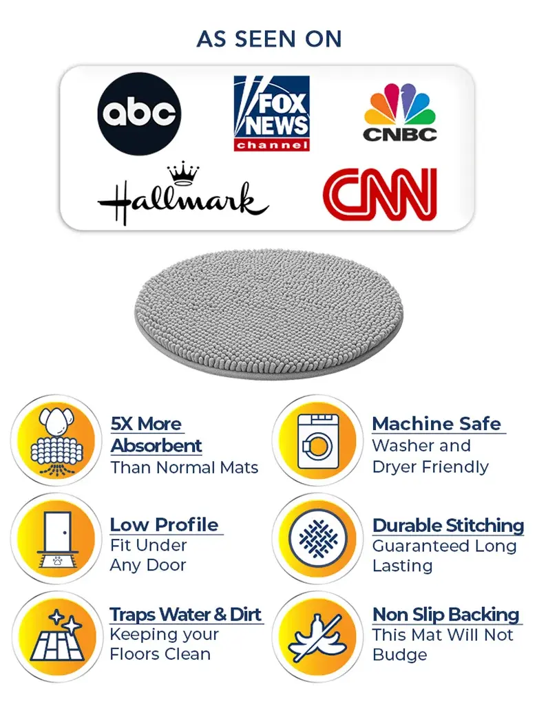 Muddy Mat® Shown on TV – Super Absorbent Microfiber Dog Door Mat for Muddy Paws, Non-Slip Washable Pet Rug, Quick Dry Chenille Entryway Carpet, Machine Washable Indoor Outdoor Round & Oval Mats