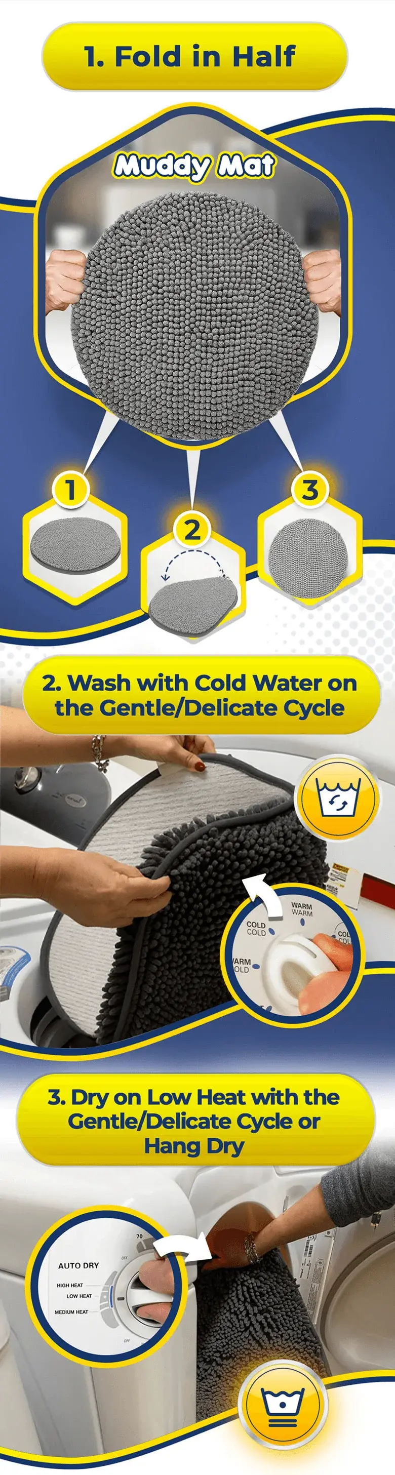 The Ultra-Durable Muddy Mat Can Be Cleaned in 3 Simple, Quick and Easy Steps.