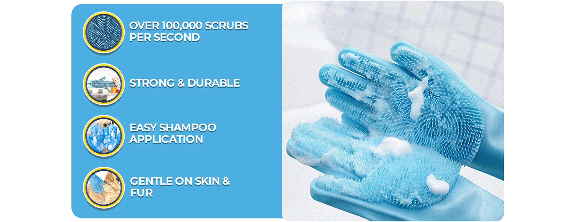 Made from durable, high-quality silicone, our gloves tackle tough cleaning while being gentle on your pet’s fur and skin.