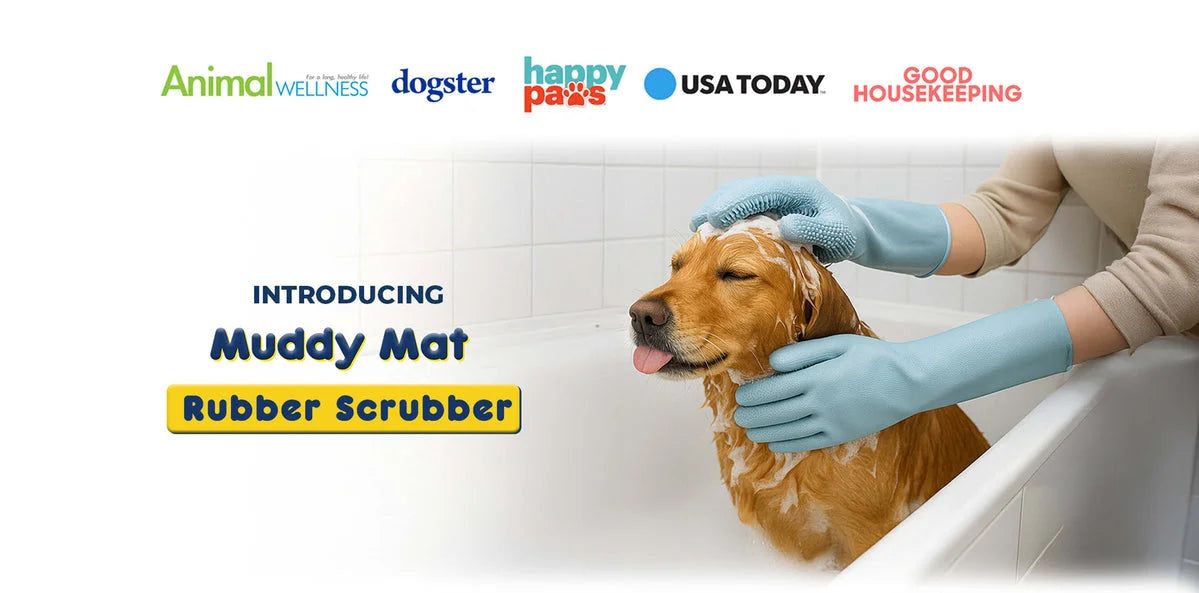 Muddy Mat's dog grooming gloves use a proprietary micro-scrubbing technology that’s latex-free, safe for skin and fur, and resistant to heat. Featuring fur- and dirt-trapping micro-bristles, these gloves not only give your dog a deeper, safer kind of clean–they’re also great for cleaning and disinfecting surfaces throughout your household.