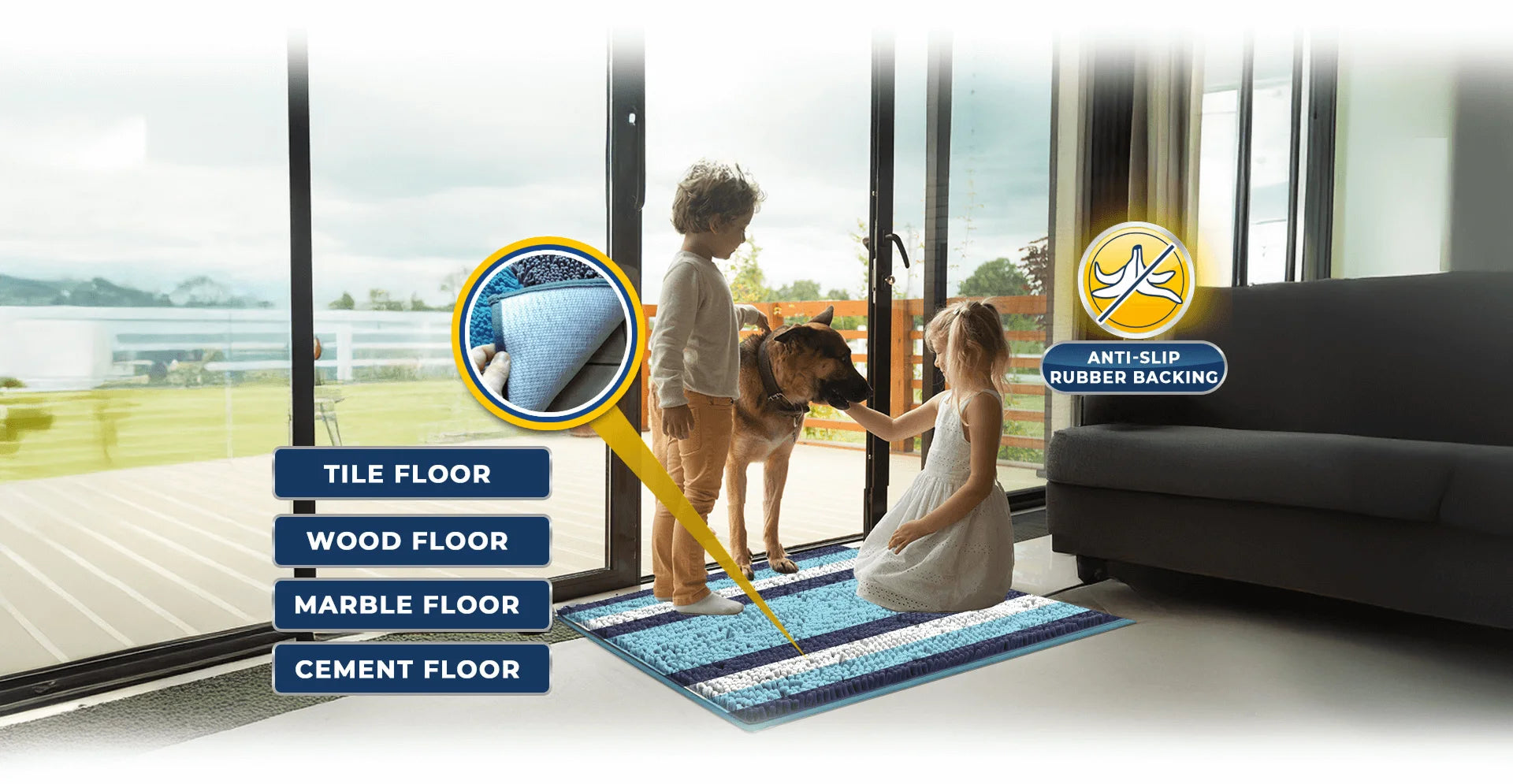 Whether on Tile, Cement, Marble, or Wood: Our Anti-Mud Mat Has Super Grip Technology that Firmly Keeps the Mat in Place.