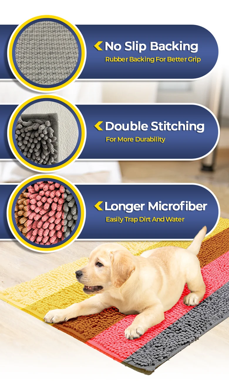 Muddy Mat® Horizontal Loop Design Super Absorbent Chenille Dog Door Mat for Muddy Paws – Non-Slip, Machine Washable Indoor Entry Rug, Quick-Dry Pet Mat for Entryway