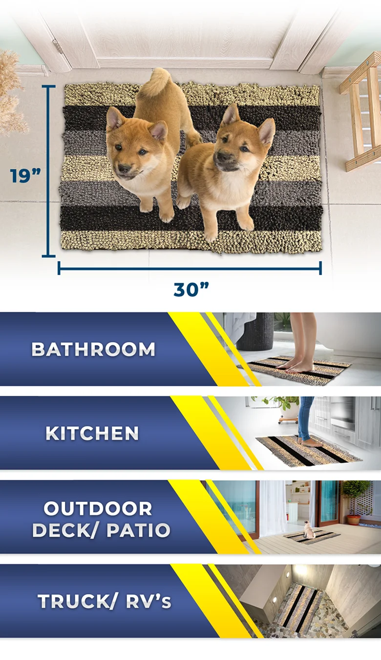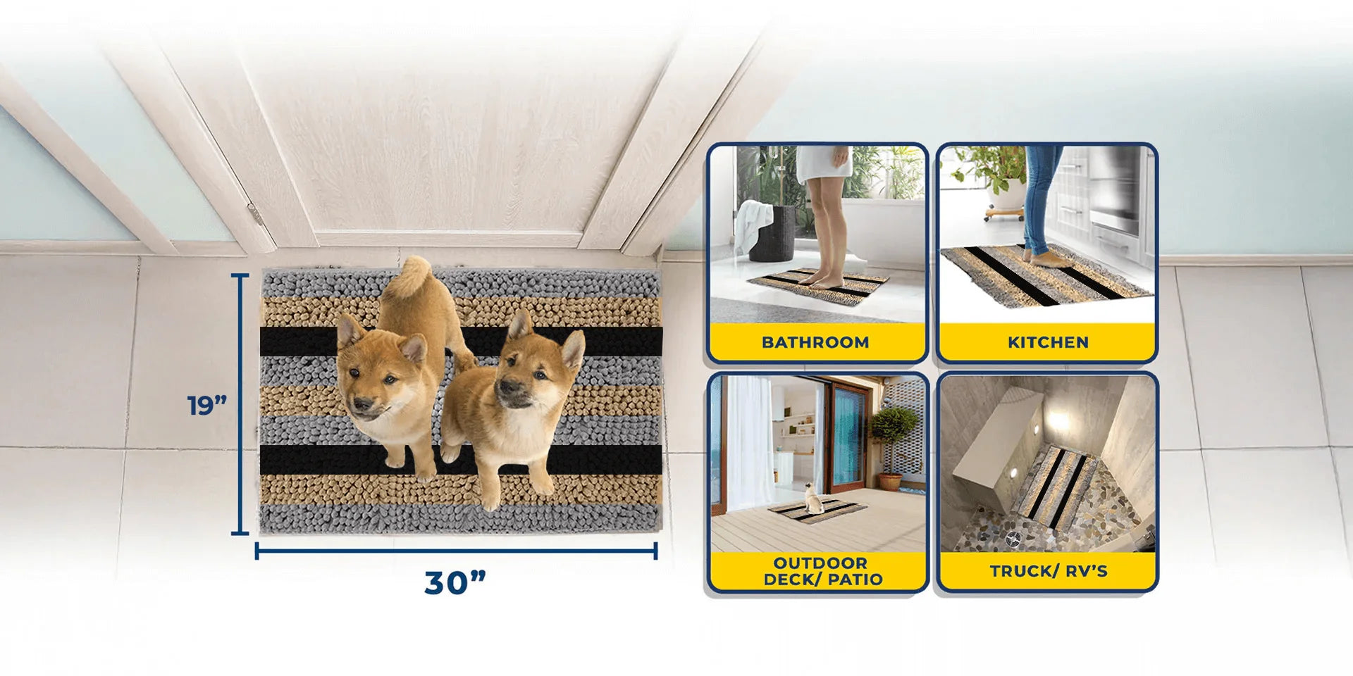 In the Bathroom, Under the Doggy Door, or a Soft Bedding for the Kennel, Place your Muddy Mat Anywhere!