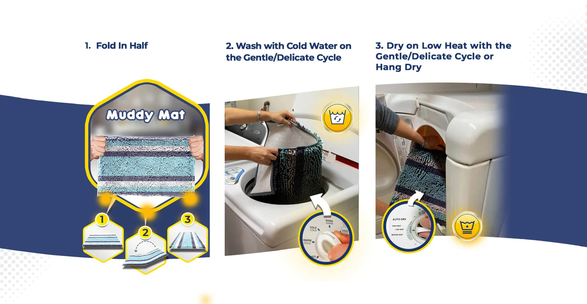 The Ultra-Durable Muddy Mat Can Be Cleaned in 3 Simple, Quick and Easy Steps.