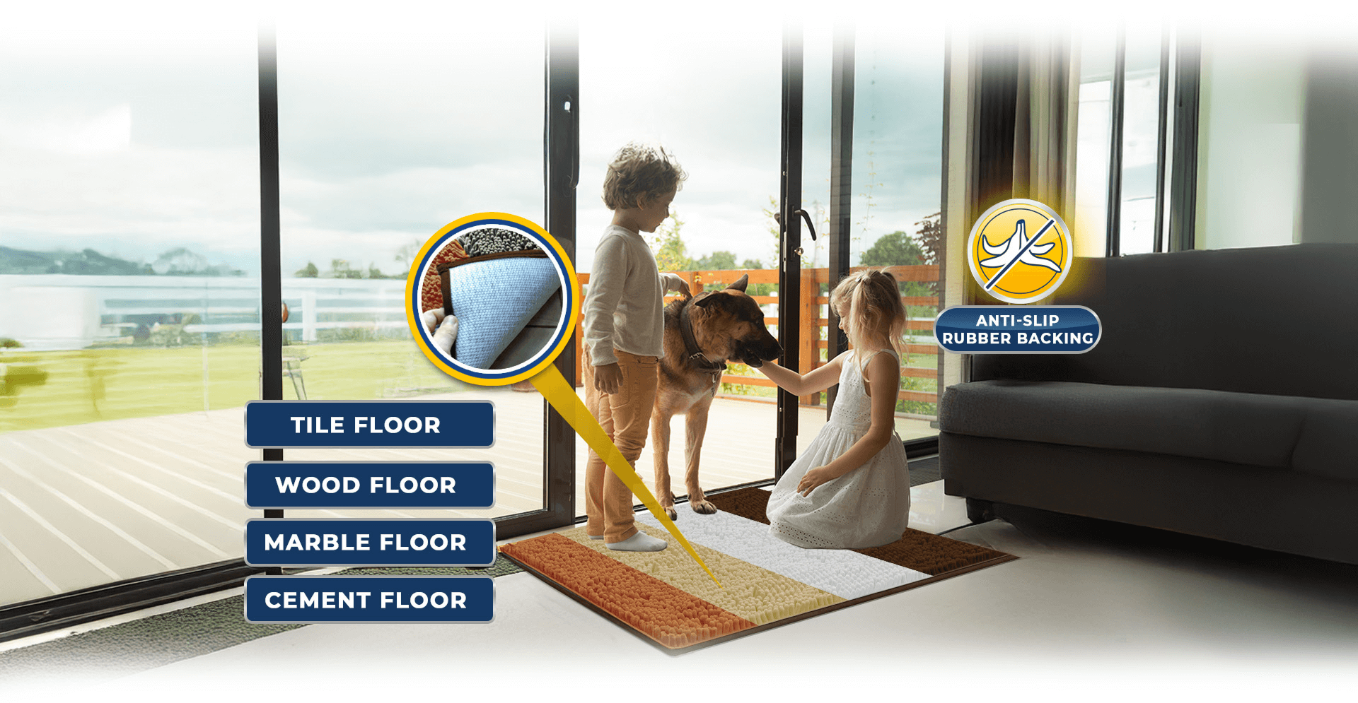 Whether on Tile, Cement, Marble, or Wood: Our Anti-Mud Mat Has Super Grip Technology that Firmly Keeps the Mat in Place.