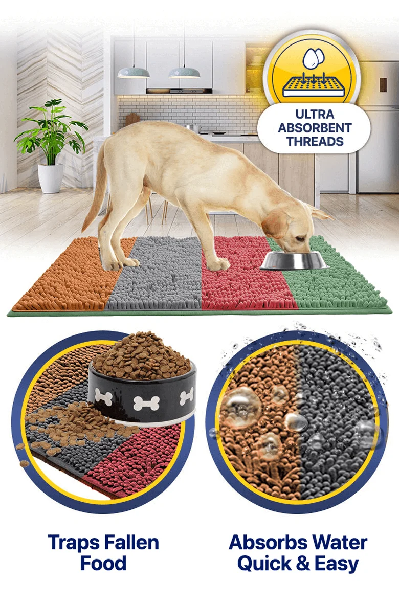 The Muddy Mat will trap any fallen kibble and Absorb All Water For a Quick and Easy Clean-up!