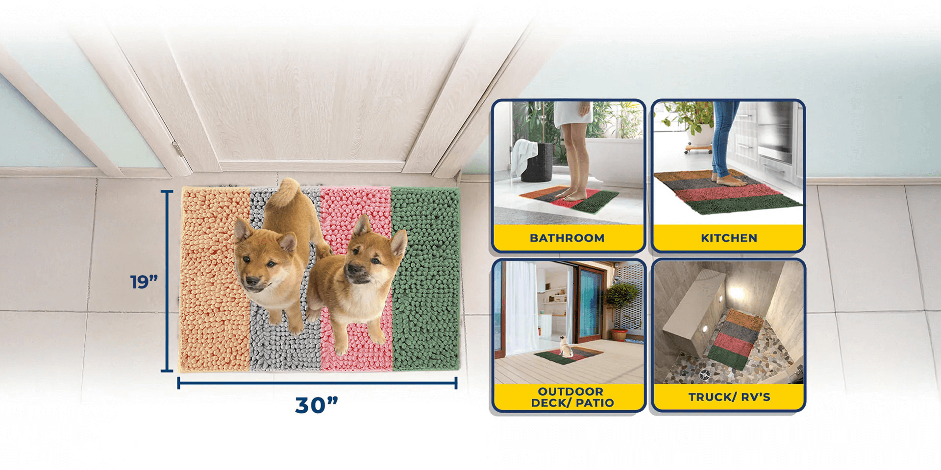In the Bathroom, under the Doggy Door, or as Soft Bedding for the Kennel, Place your Muddy Mat Anywhere!