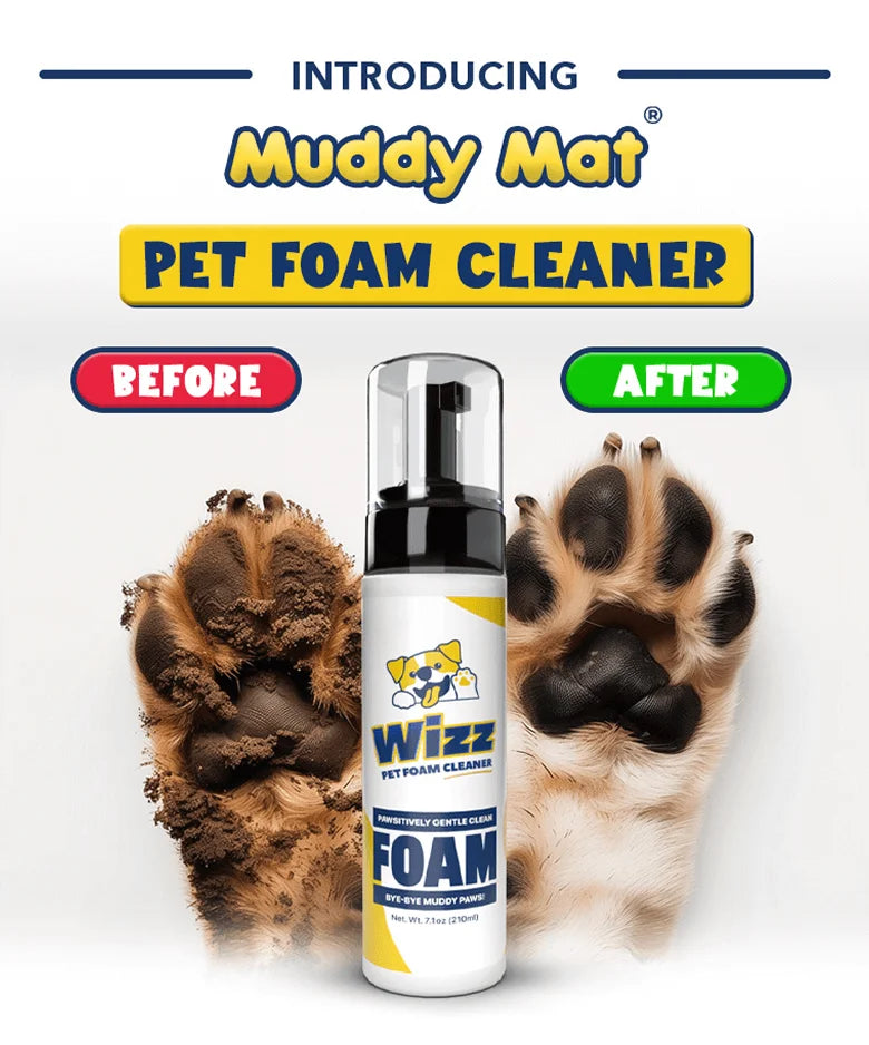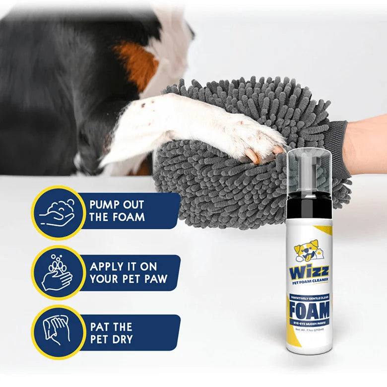 Muddy Mat® Wizz Paw Foam & Pet Grooming Mitt – No-Rinse Cleaner for Dogs Large & Small – Paw Cleanser & Chenille Bath Mitt – Portable Grooming Solution