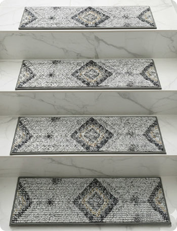 Muddy Mat® Soft Chenille Stair Treads Non-Slip Reusable, Super Absorbent Stair Treads for Wooden Steps, Tile & Marble Floor, Easy to Install & Machine Washable - Diamond 30'' x 7''