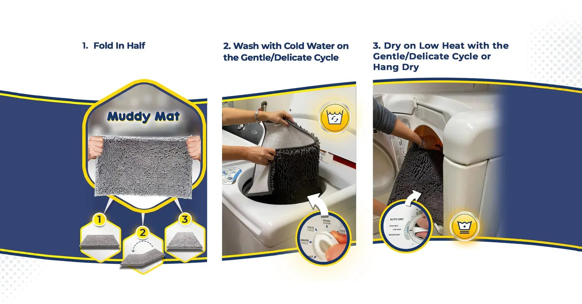The Ultra-Durable Muddy Mat Can Be Cleaned in 3 Simple, Quick, and Easy Steps.