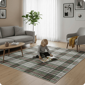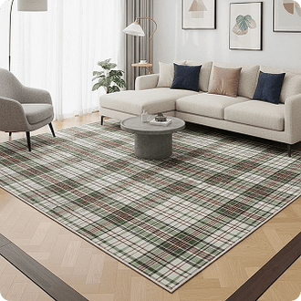 Muddy Mat® Plaid Washable Area Rugs for Living Room, Bedroom & Dining Room – Modern Soft Low Pile Non Slip Carpet – Pet Friendly Waterproof Foldable Rugs for Home