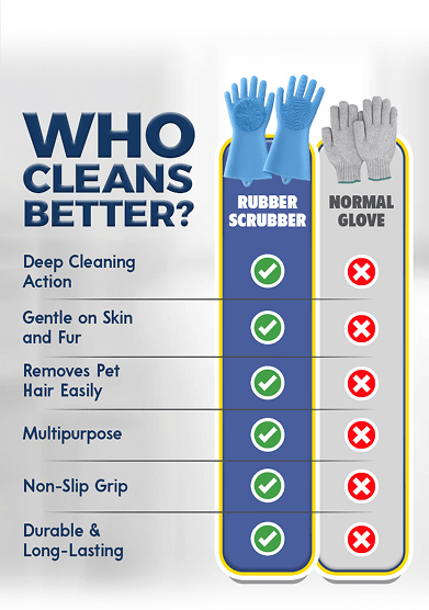 Made from durable, high-quality silicone, our gloves tackle tough cleaning while being gentle on your pet’s fur and skin.