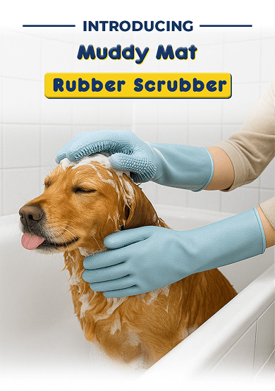 Muddy Mat's dog grooming gloves use a proprietary micro-scrubbing technology that’s latex-free, safe for skin and fur, and resistant to heat. Featuring fur- and dirt-trapping micro-bristles, these gloves not only give your dog a deeper, safer kind of clean–they’re also great for cleaning and disinfecting surfaces throughout your household.