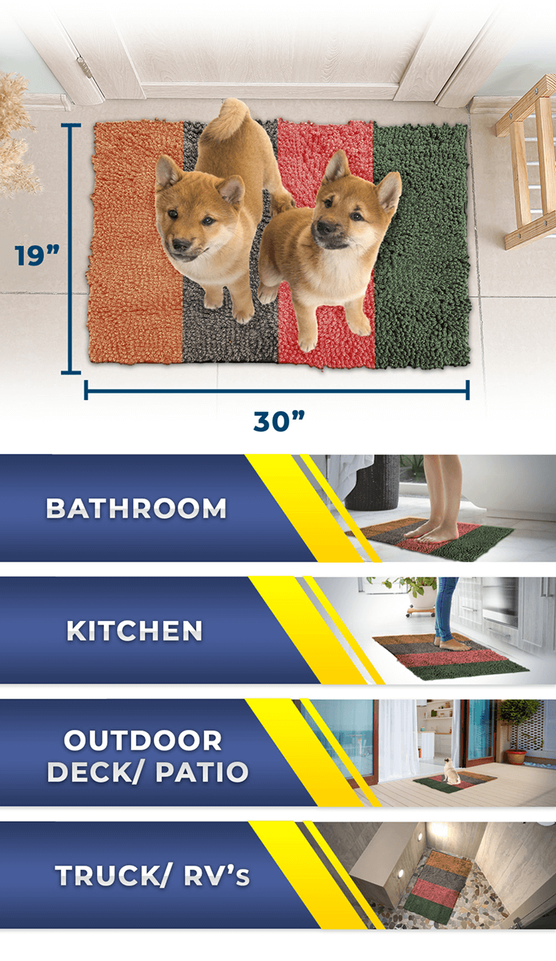 In the Bathroom, Under the Doggy Door, or a Soft Bedding for the Kennel, Place your Muddy Mat Anywhere!