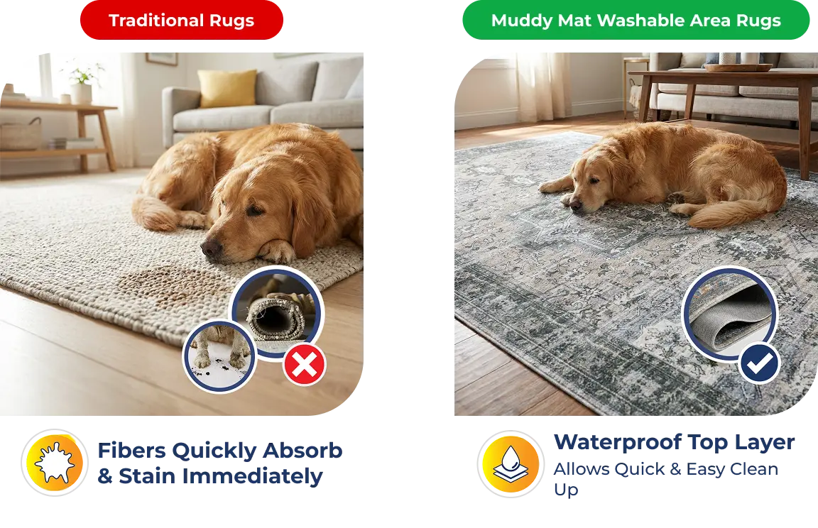 Compared to Traditional Area Rugs, Muddy Mat’s Washable Rugs Prevent Deep Soaked Stains