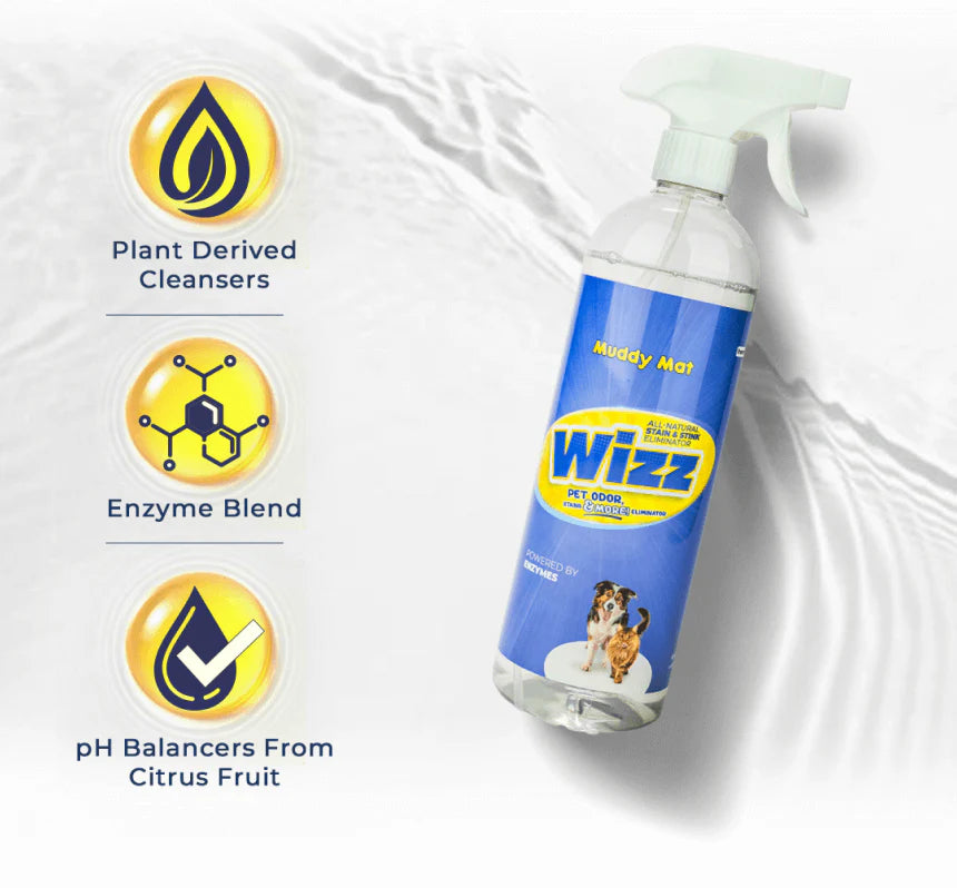 Looking for a powerful solution to get rid of stubborn pet odors and stains? Wizz by Muddy Mat is a popular and highly effective natural pet odor eliminator that’s perfect for indoor use. Keep your home fresh by adding our spray to your collection of household cleaning supplies!
